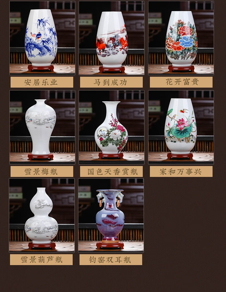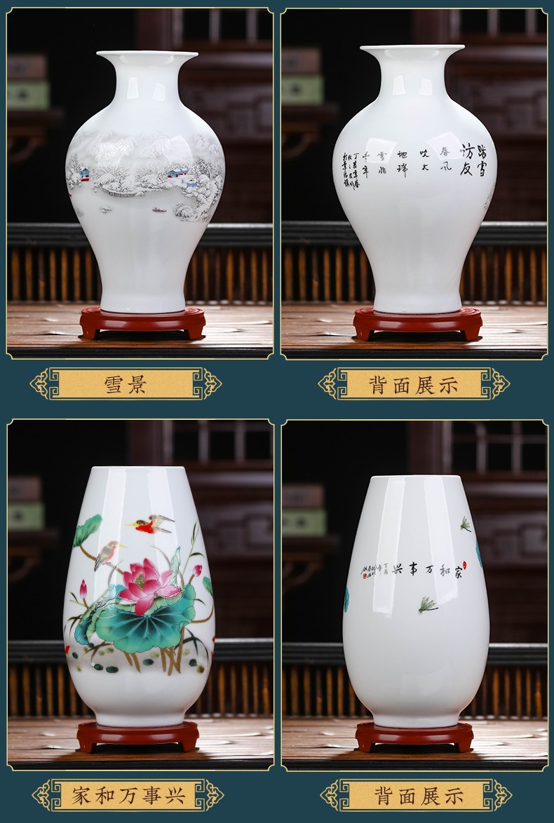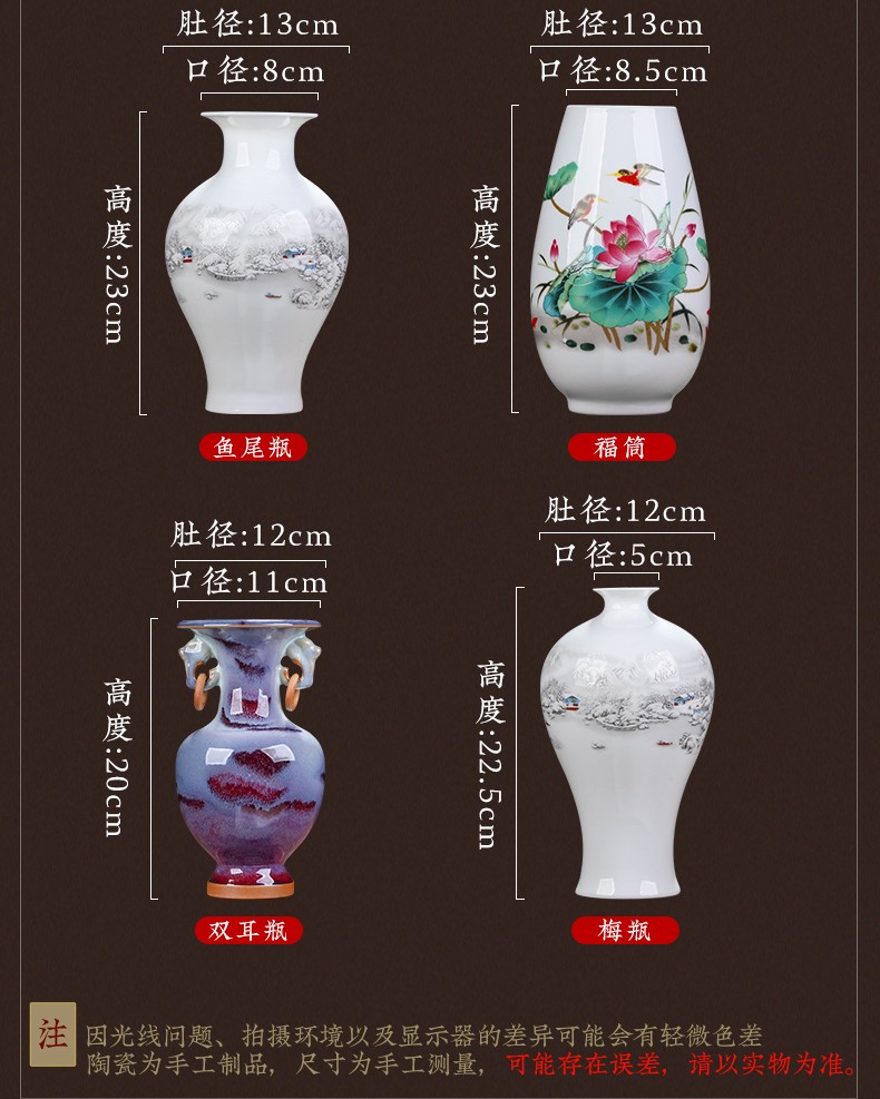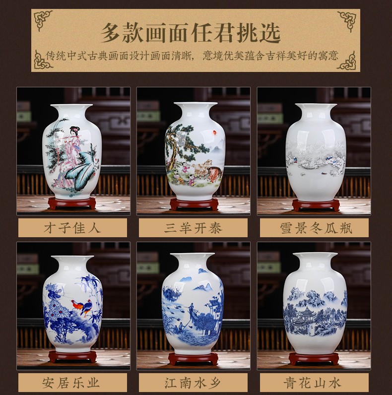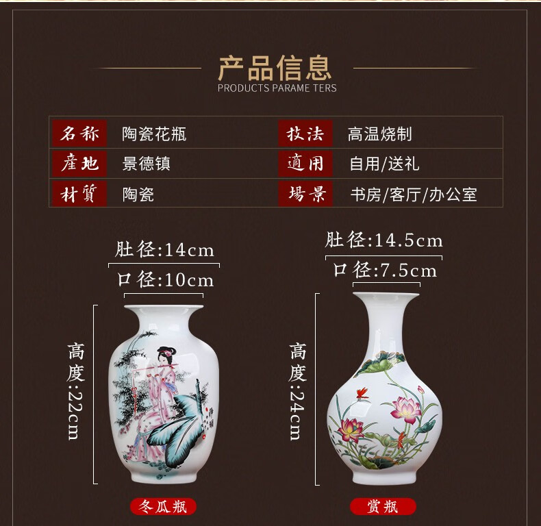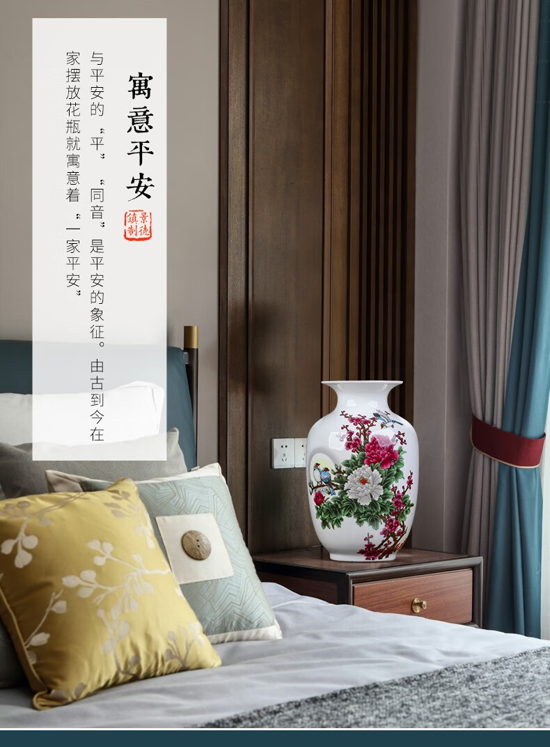 景德镇陶瓷插花工艺品家居装饰摆件中式现代家居客厅装饰书房电视柜水培插花瓶月亮赏瓶高22+底座