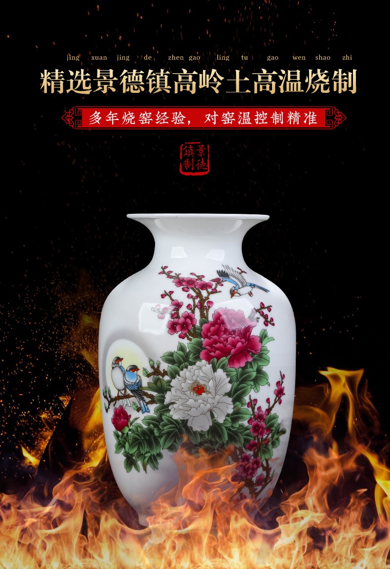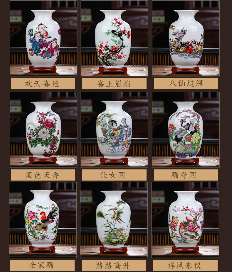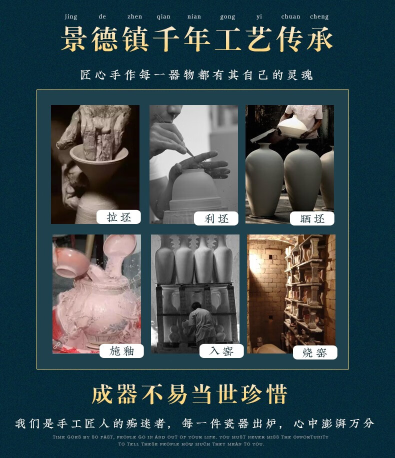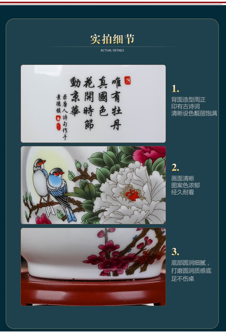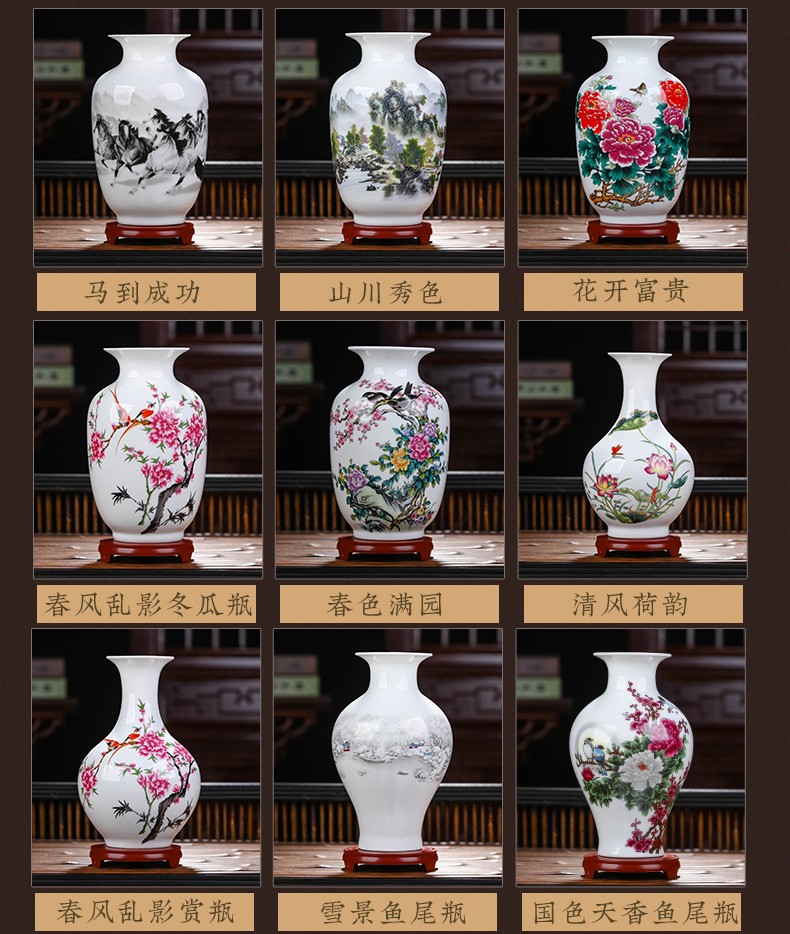 景德镇陶瓷插花工艺品家居装饰摆件中式现代家居客厅装饰书房电视柜水培插花瓶月亮赏瓶高22+底座