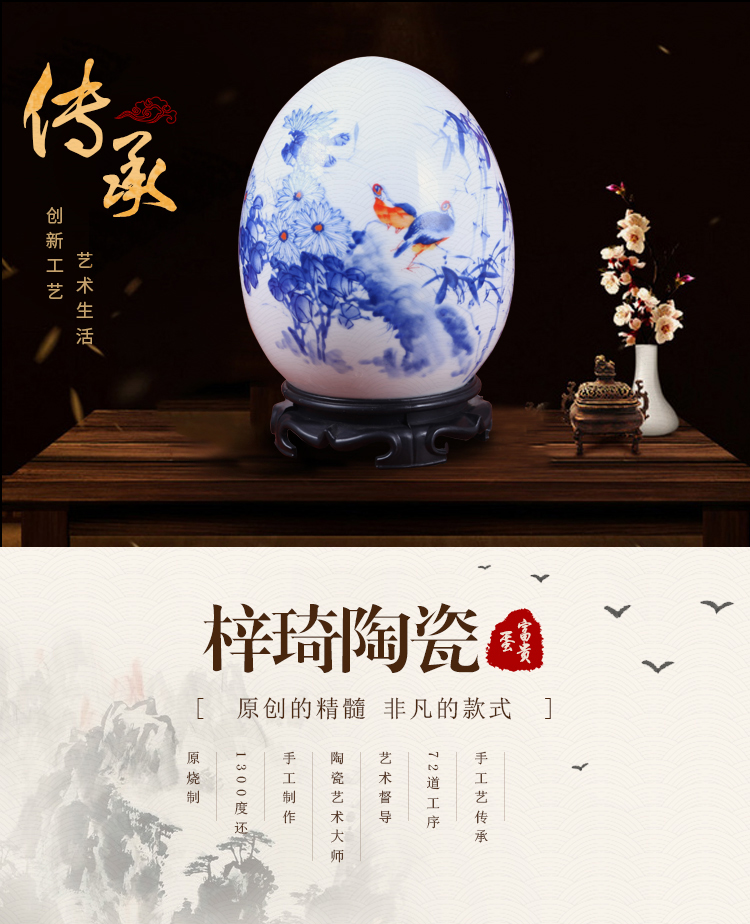 梓琦摆件景德镇陶瓷器装饰玄关创意小礼品家居饰品摆件客厅电视柜酒柜装饰工艺品办公桌两岸青山+底座